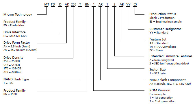 SSD Memory Chip , MTFDDAK256TBN-1AR12AB Memory 256GB Nand flash Chip